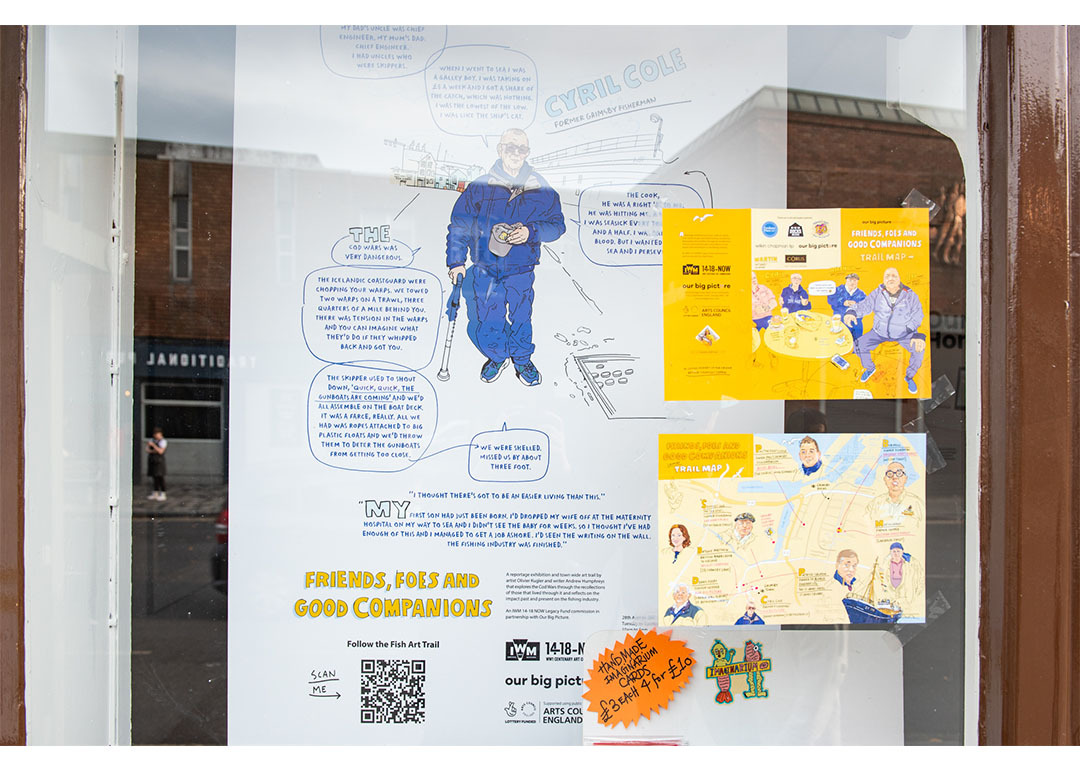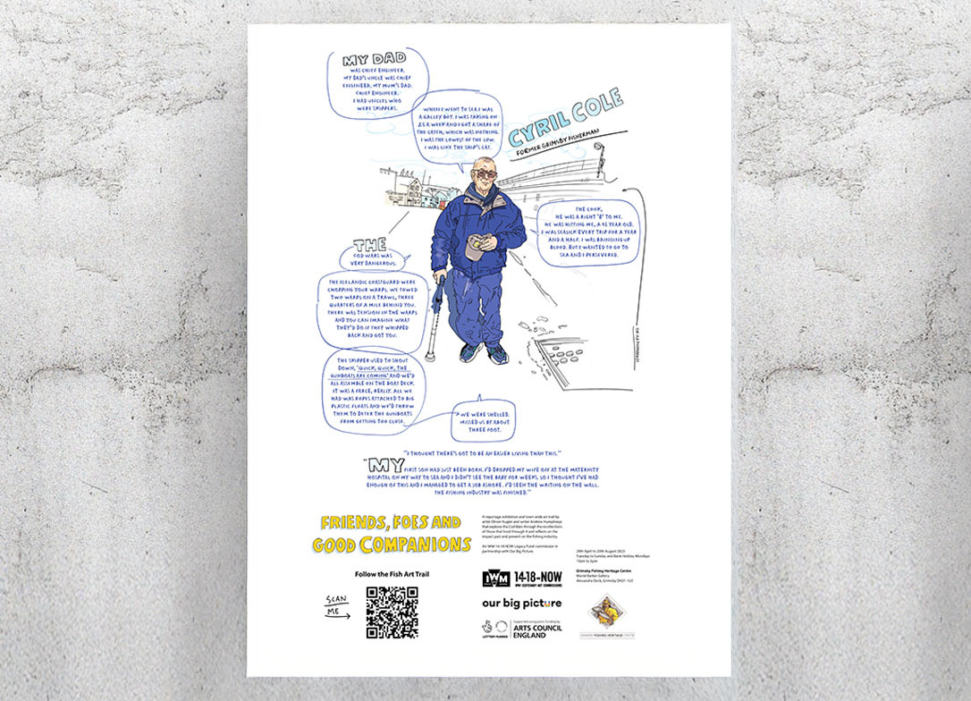 The exhibition featured some 30 artworks by award-winning illustrator Olivier Kugler and writer Andrew Humphreys. The works were developed from extensive interviews with former Grimsby fishermen, fishmongers, processors and Icelandic fishing industry representatives. This fusion of art and oral history ensures that the voices of those who lived through the era are heard, understood and preserved for future generations.